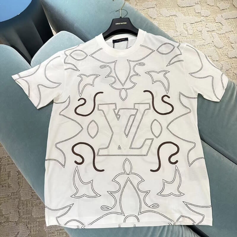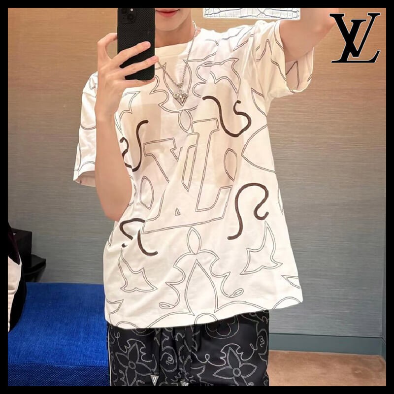 追跡付ルイヴィトン n級品 エンブロイダードコットンTシャツ 1AFQ71