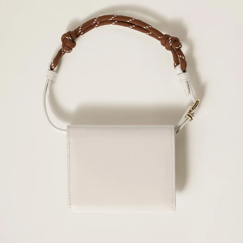 調節可能なナイロンストラップとメタルのミュウミュウロゴがレザーのデザイン性を高めています。